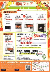 少し遅くなりましたが暖房フェア&オータムセールを開催中です!